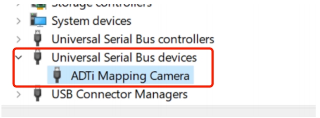 3. After the installation is complete, you can see that the ADTi Mapping Camea is in a normal state under the Device Manager.