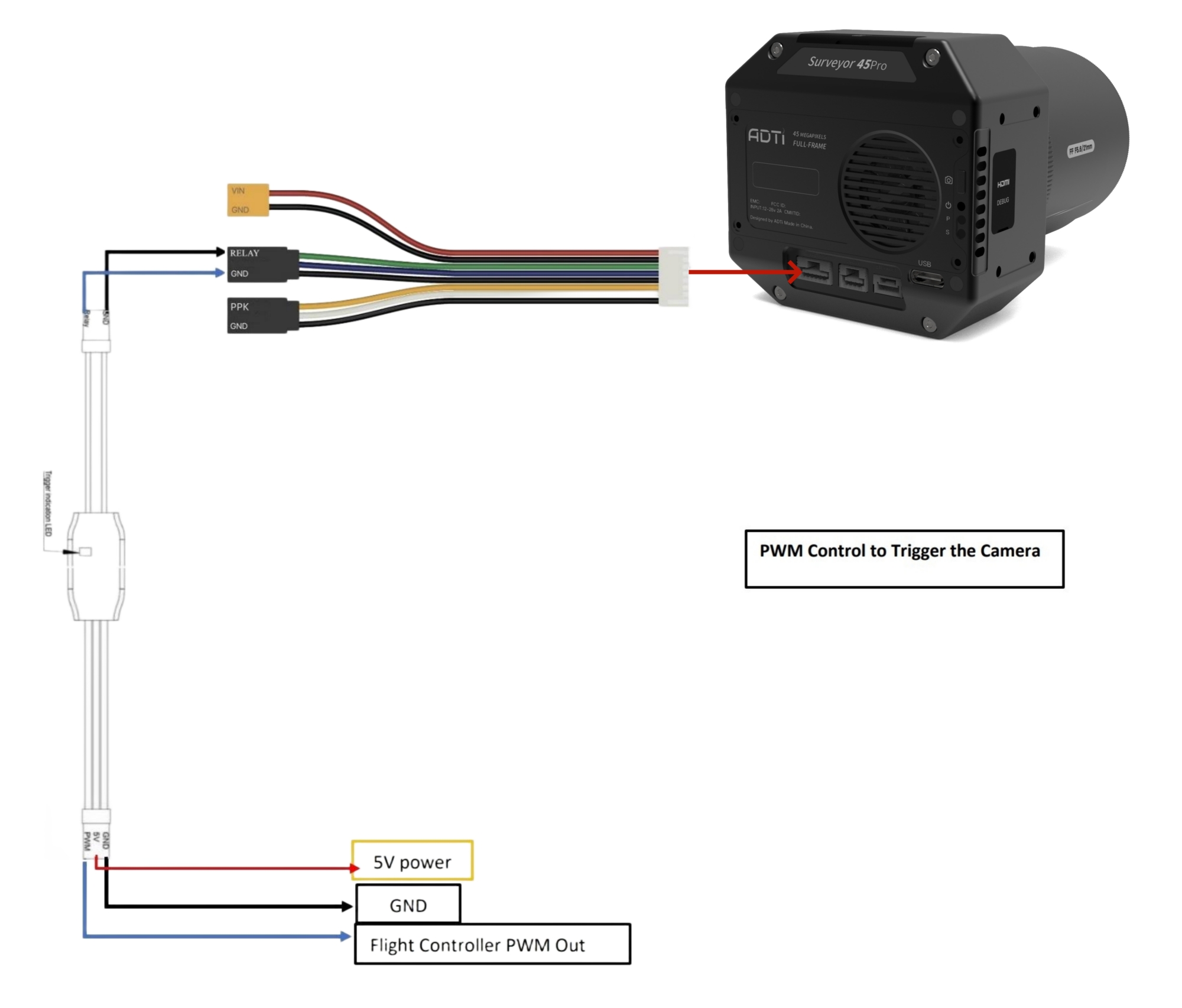 below photo shows the camera triggering by PWM with ADTI Relay-to-PWM module: